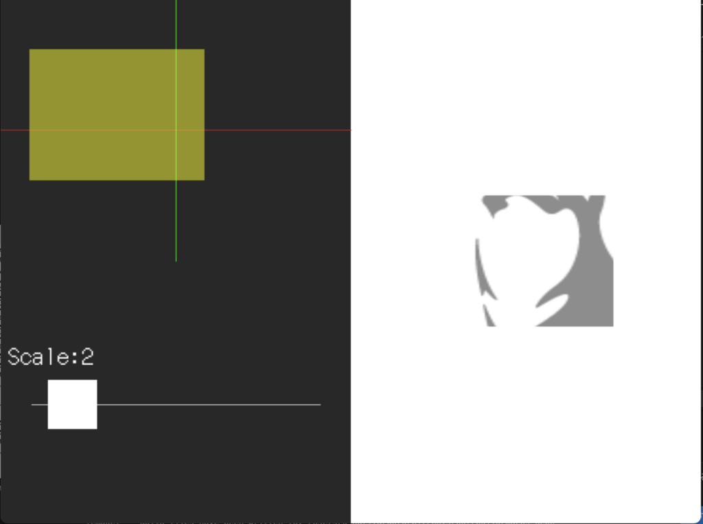 引数は画面左上参考にScaleCtlComponentの幅、高さ、ScaleCtlオブジェクトのxy座標、スケール、コントローラーの色を指定します。scale_update_fcにScaleComponent::updateメソッドから取得できる関数を指定します。
